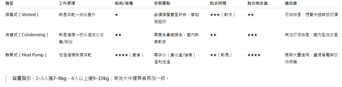 - 氣候/生活:梅雨長、家中衣物量大、毛孩或運動衣常洗→分數高。