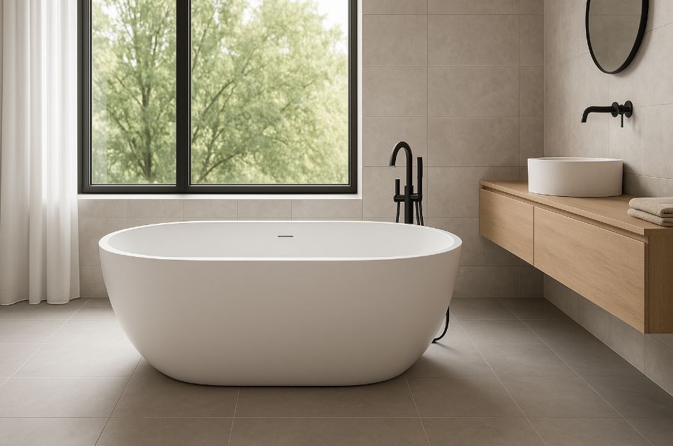 蛋型獨立浴缸的美學成立,前提是尺寸對位+退縮可清潔+給排水與熱水量充足+防水找坡到位。