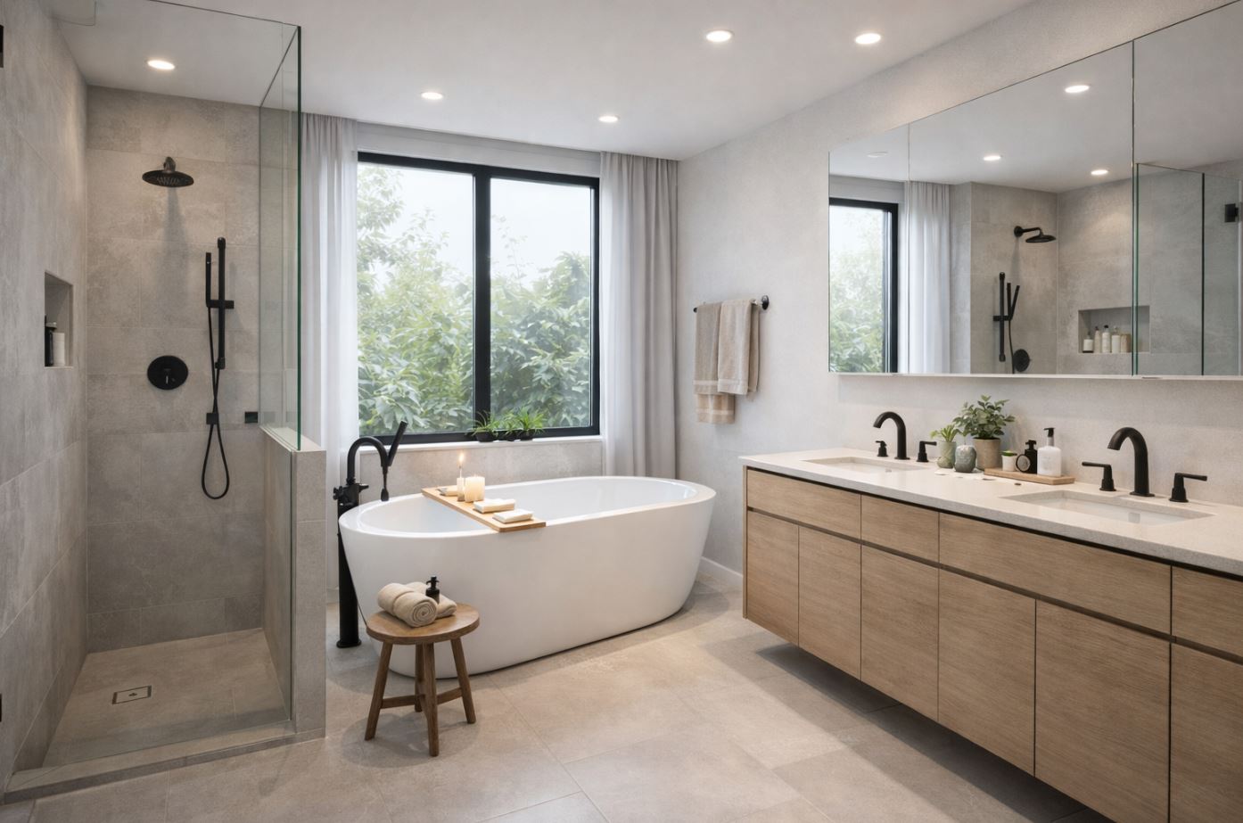 浴缸周邊與平台需做完整防水層與試水測試,避免日後滲水。