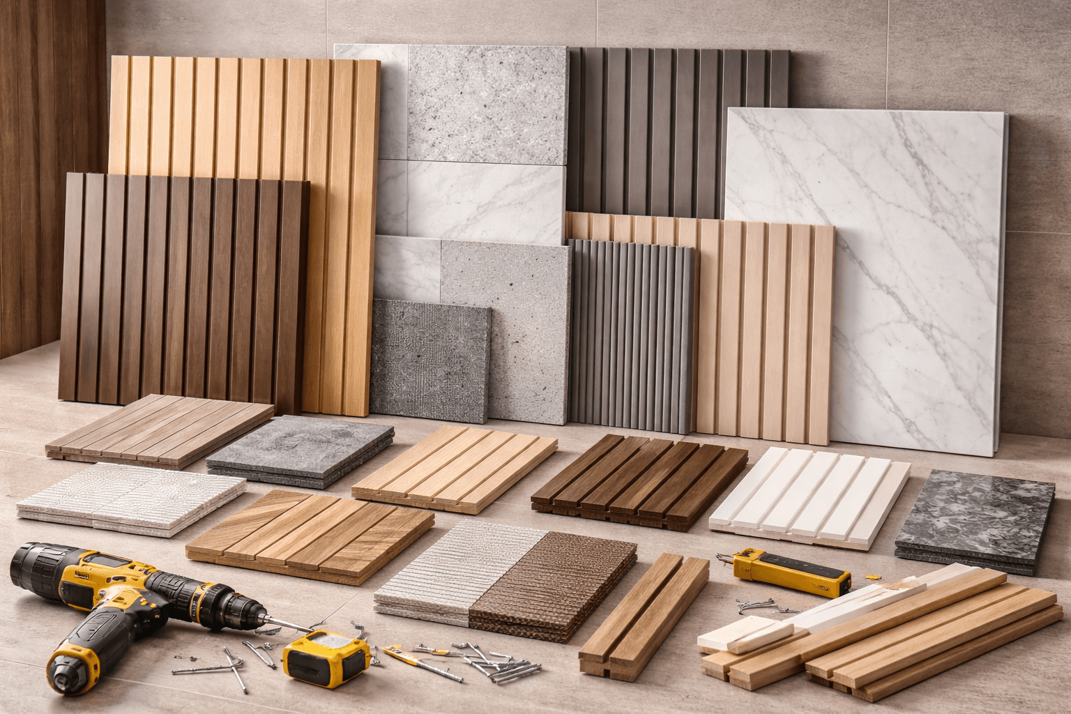 壁板是空間視覺的一部分,顏色、紋理與尺寸模數都應與地板、櫃體、門片與整體設計一起搭配。