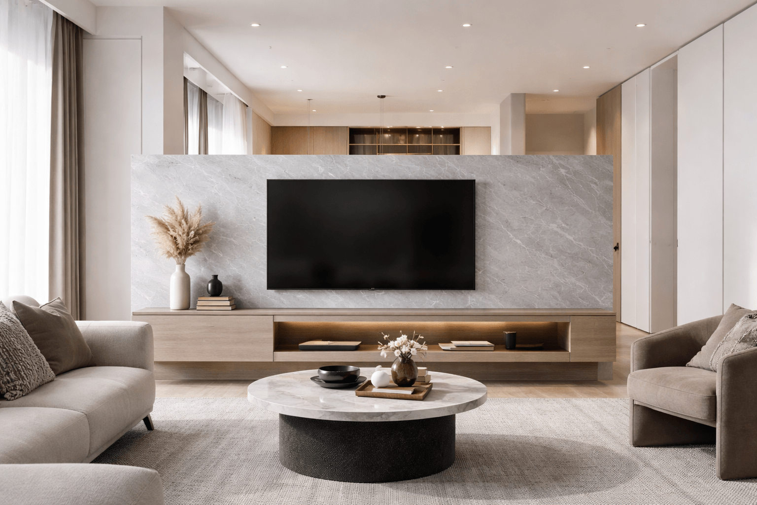 很多人喜歡半高電視牆,起初是因為外型俐落耐看,但真正入住後,會發現它帶來的優勢不只在美觀,也和空間使用方式密切相關。