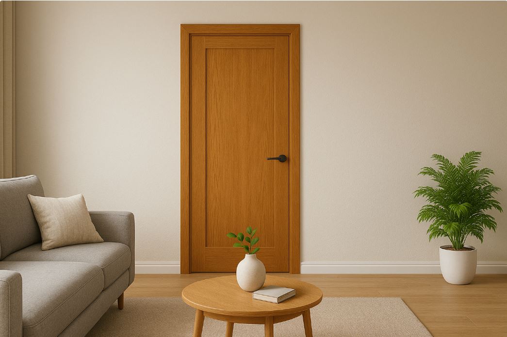 - 貼皮門/夾板門:外層貼木紋皮或薄板,外觀自然又輕盈,性價比高,適合一般臥室或書房使用。