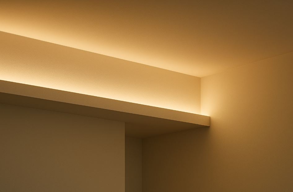 - 燈條藏在燈槽內側、櫃體後方、踢腳凹槽等