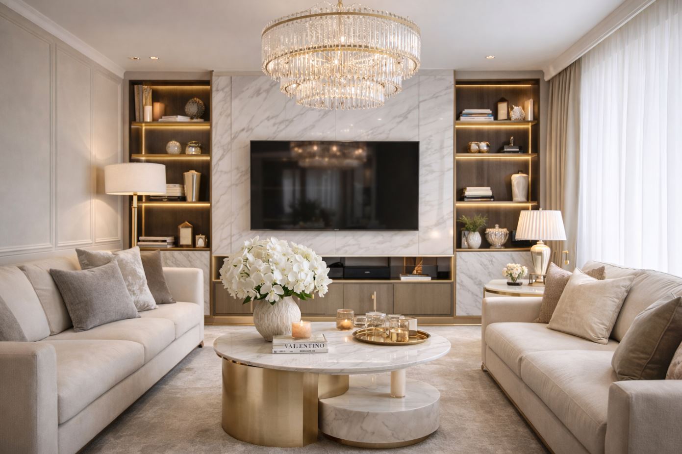 輕奢風建議偏暖白光,避免過白的冷光破壞氛圍。