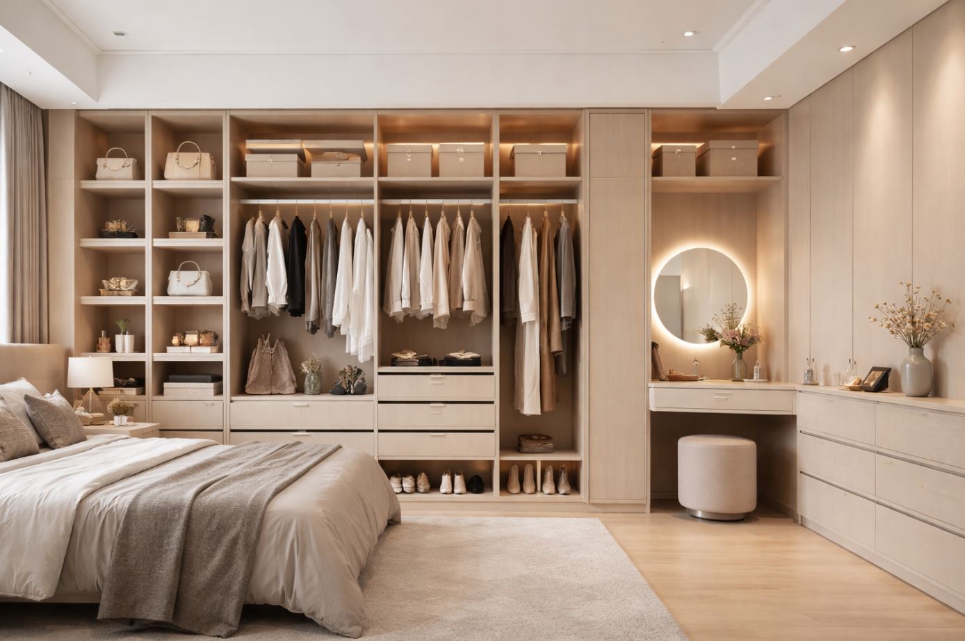 最順手的高度(胸口到腰間)放日常衣物;越不常用的放上層或下層。收納不是比誰能塞,而是比誰能拿得快、放得回。