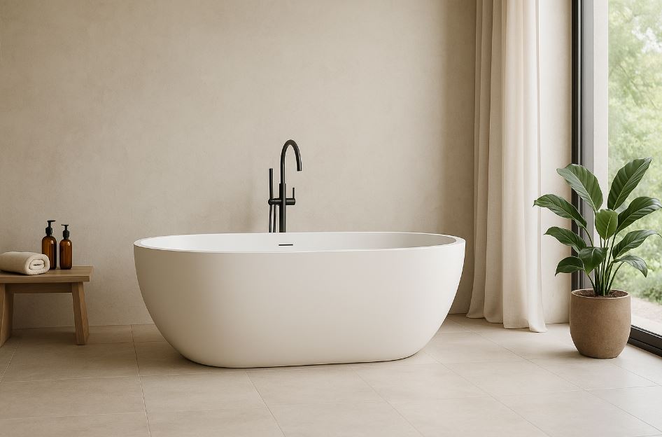 蛋型獨立浴缸的美學成立,前提是尺寸對位+退縮可清潔+給排水與熱水量充足+防水找坡到位。