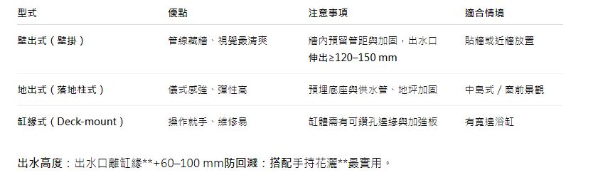 龍頭怎麼配?三型式比較