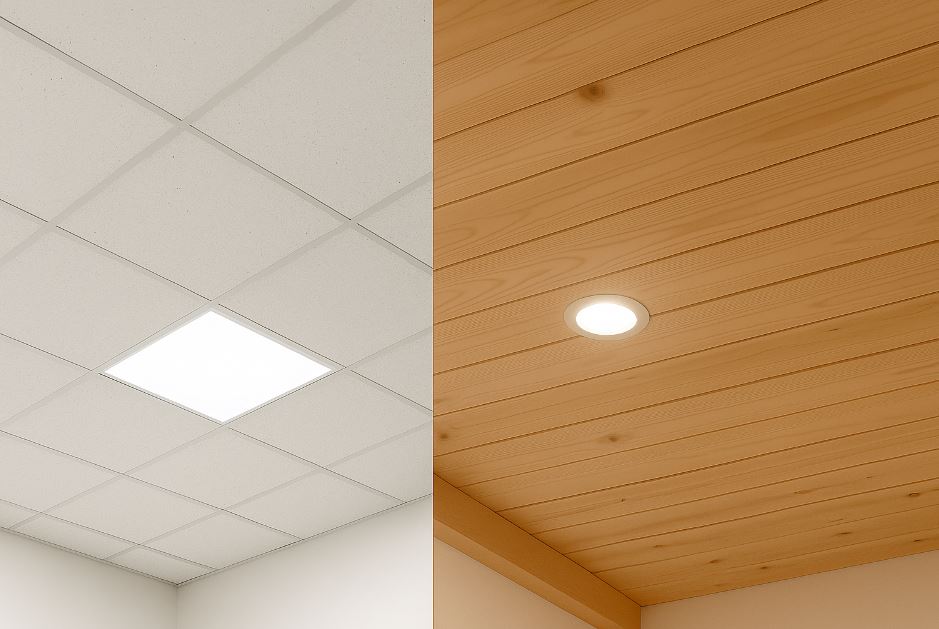 - 接受格狀線條但要乾淨俐落 → 選質感較佳的輕鋼架板材(素面白板、吸音板等)。