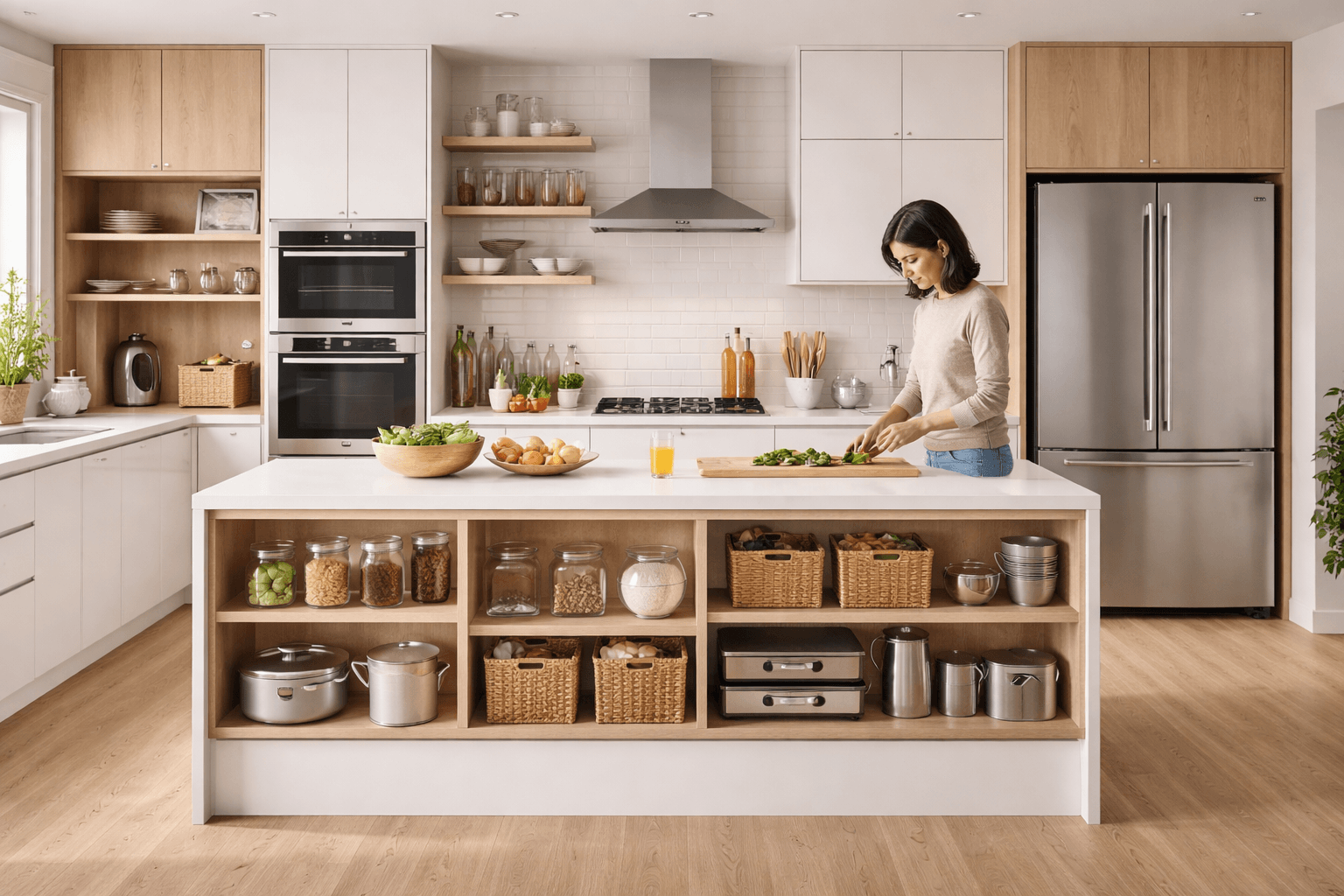 廚房收納設計真正重要的,不是單純把櫃子做多,而是讓每一個物品都有合理位置,並且符合備料、烹調、清洗與整理的日常使用順序。