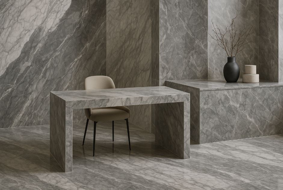 瑪摩石結合天然石材紋理與現代材料的耐用特性,不論用於玄關、客廳、浴室或商用空間,都能呈現乾淨俐落的質感。