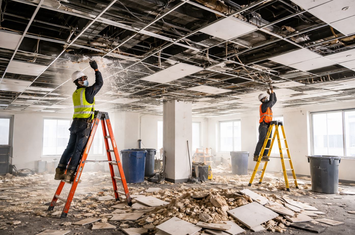 但天花板拆除並不是單純把板子拆下來就結束,它會牽涉到電線管路、空調配管、消防設備、漏水痕跡,甚至是結構樑柱狀況。